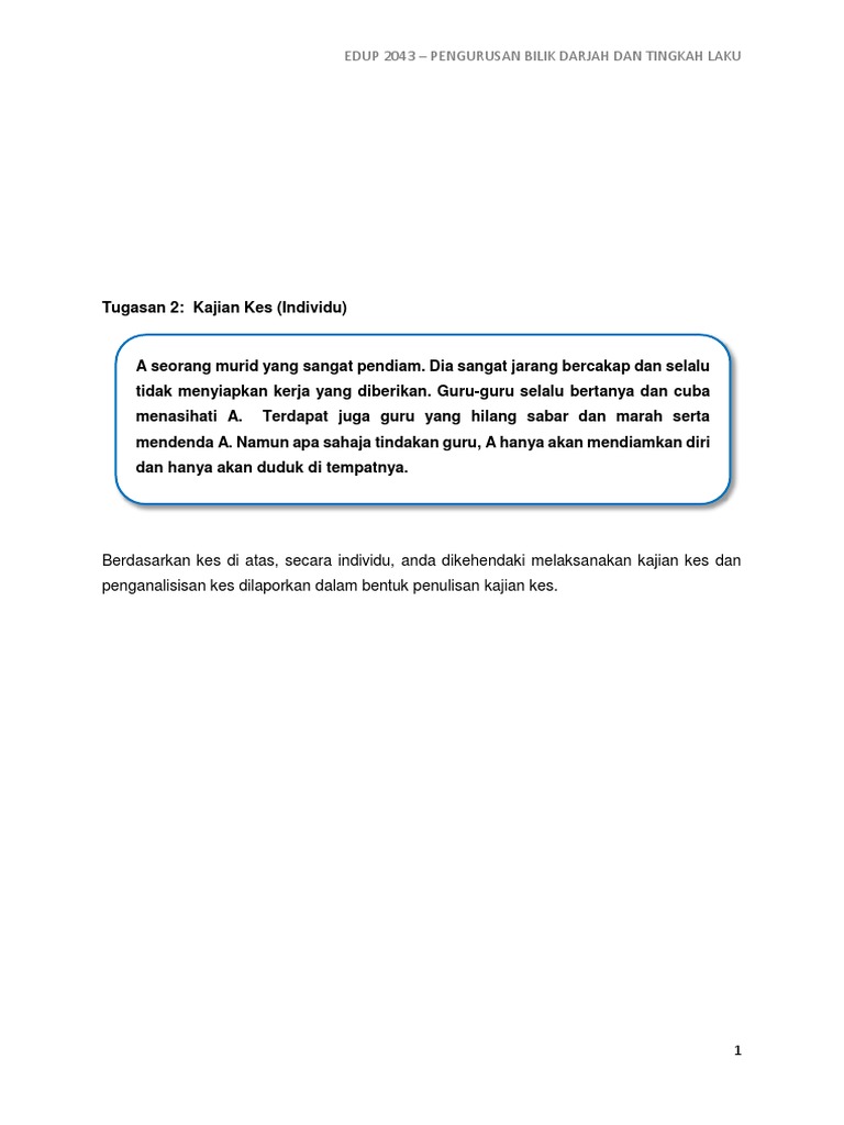 Pengurusan bilik darjah & tingkah laku ( edup 3043 ) haslinda binti bacho pismp pemulihan amb jun 2015.